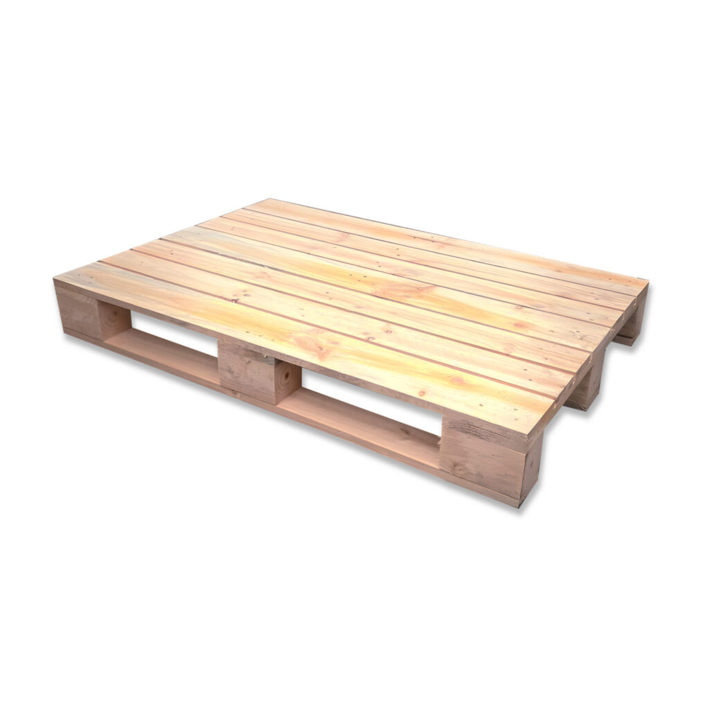 El modelo P03 es un pallet light duty fabricado con una combinación de material nuevo y reciclado. Su estructura mixta incluye una cubierta superior hecha con madera recuperada del proceso productivo, mientras que los tacos son reciclados y ensamblados con precisión. Incorpora un logo de reciclaje para su fácil